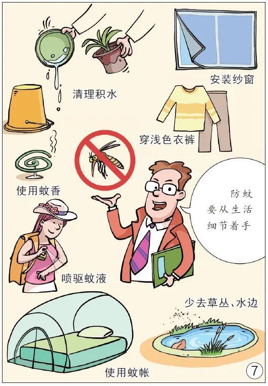 - 出門穿淺色衣服,少去草叢、水池等蚊蟲聚集的地方。