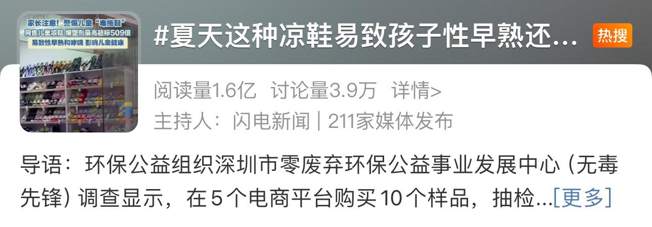 [1] 《這種“毒拖鞋”易致孩子性早熟!家裏有的趕緊扔》.央視網2025-06-03
