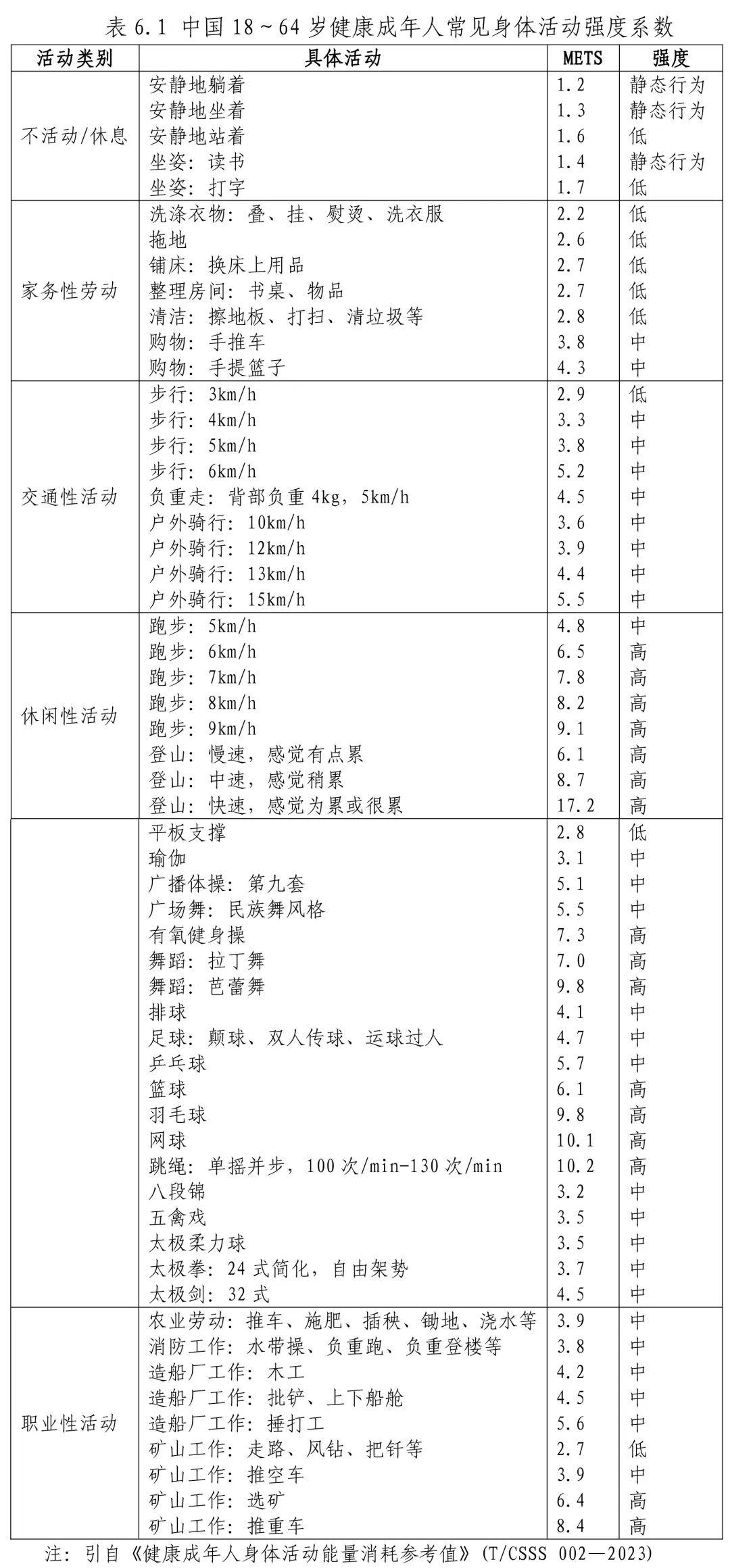 別煩惱,這份《中國18~64歲健康成年人常見身體活動強度係數》表將爲您答疑解惑,趕緊收藏對照吧!