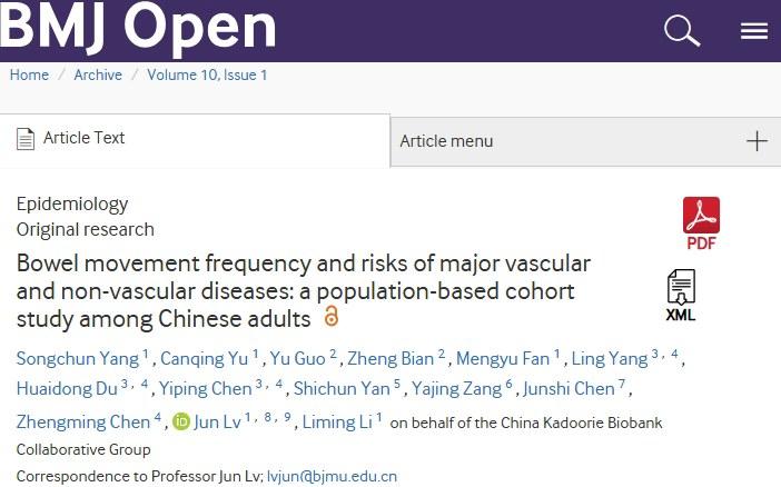 研究員通過分析分佈於中國10個不同地理區域,487198名平均年齡在51.5歲的成人每天排便情況,根據不同排便頻率分成4個小組,在10年的長期隨訪後,發現每天多次排便的人,比起每天排便1次的人羣,出現缺血性心臟病風險幾率要高12%,罹患心力衰竭的概率也要上升33%,出現2型糖尿病和慢性腎病風險也會分別高出20%和15%,其中慢性阻塞性肺疾病風險也增加了28%。