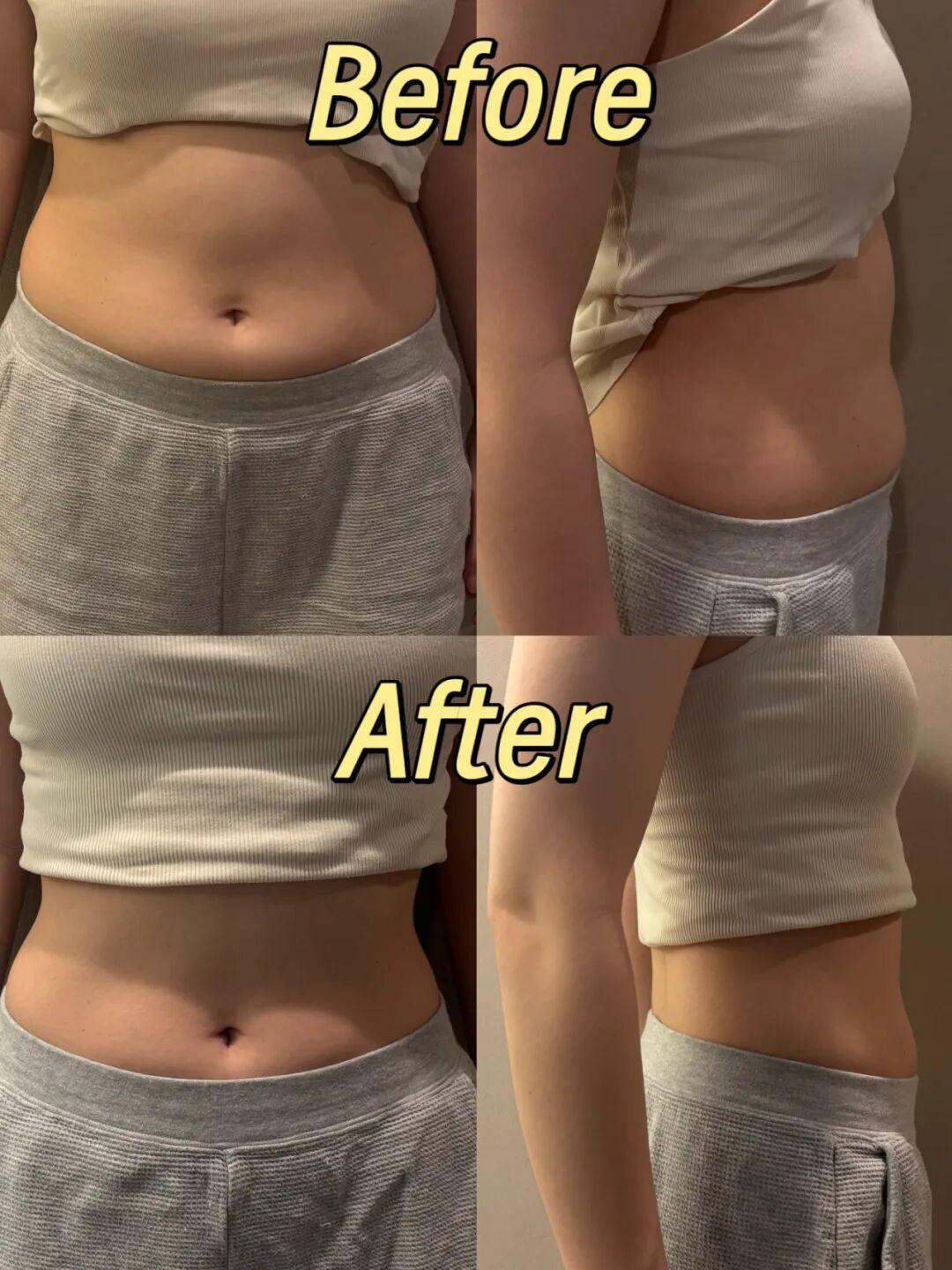第三週的變化最明顯:核心肌肉終於有了真實的「存在感」,腹部脂肪從硬厚變得柔軟、薄了一些。兩分鐘已是輕鬆完成,開始嘗試延長時間,並增加了側平板支撐等核心訓練。