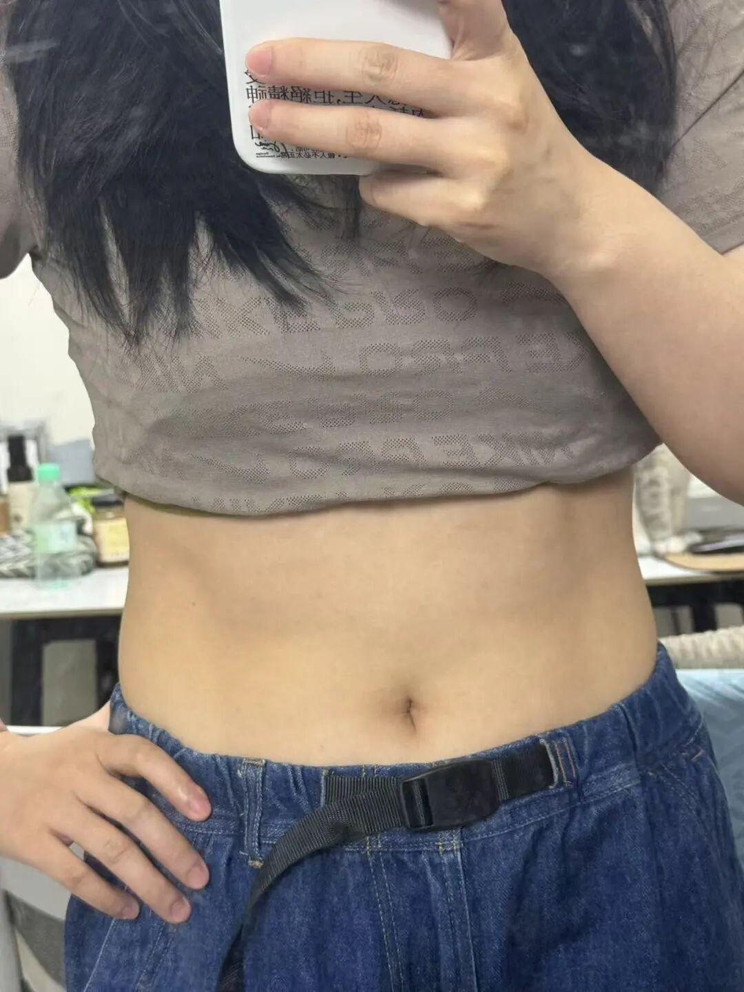 圖注:拍攝於「虐腹」後,馬甲線已清晰可見。