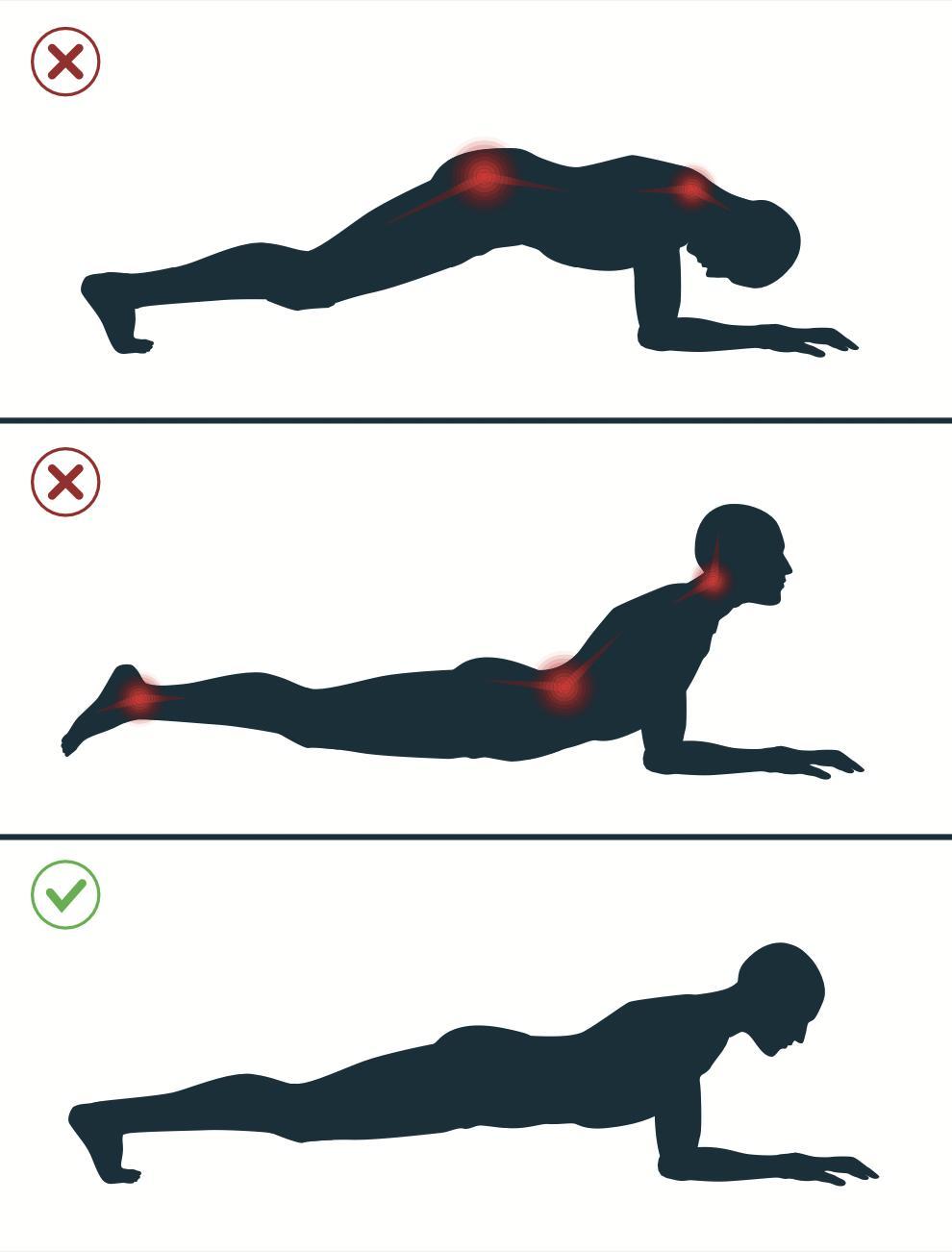 ⚠️錯誤一:塌腰。 這是最常見的錯誤,腰部向下凹陷,會將所有壓力轉移到腰椎上,不僅無效,反而傷腰。