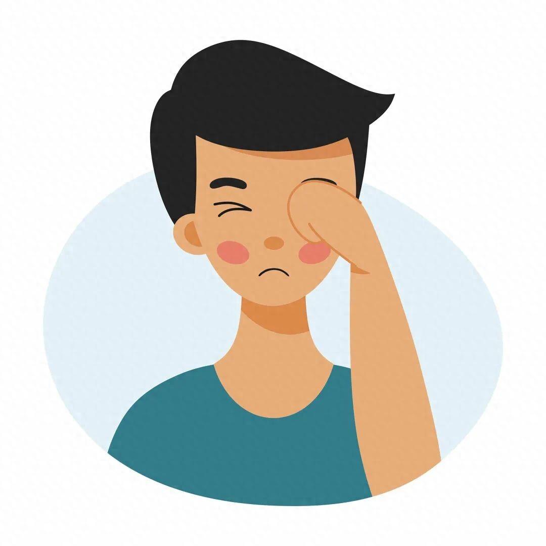 眼睛流淚、有灼熱感。眼睛有異物感,並分泌大量水樣或黏絲狀的眼淚。