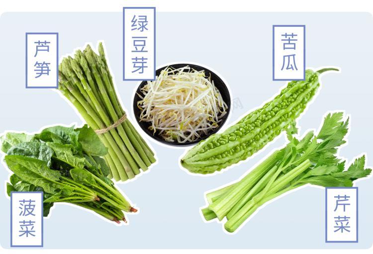 並且要注意和其他蔬菜搭配、輪換食用,以保證營養全面均衡,比如這些食材,也有降肝火功效,大家可以自由搭配組合。