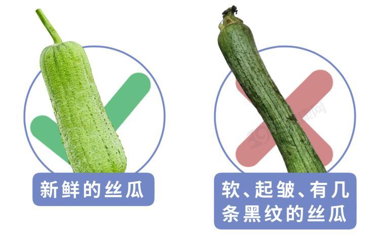 買絲瓜時,優先選擇瓜形筆直、大小適中、顏色翠綠、表皮光滑又新鮮的,發軟、發黃、起皺或帶黑紋的最好別買。