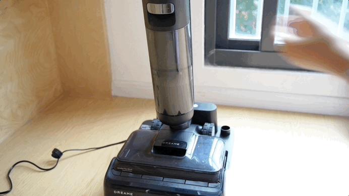 整個過程很絲滑,一口氣就能把家裏的衛生全搞完,內置 6 節大容量電池,一次充電能持續工作 40 分鐘,哪怕你家 120 平,全屋拖完一圈電量還能綽綽有餘。