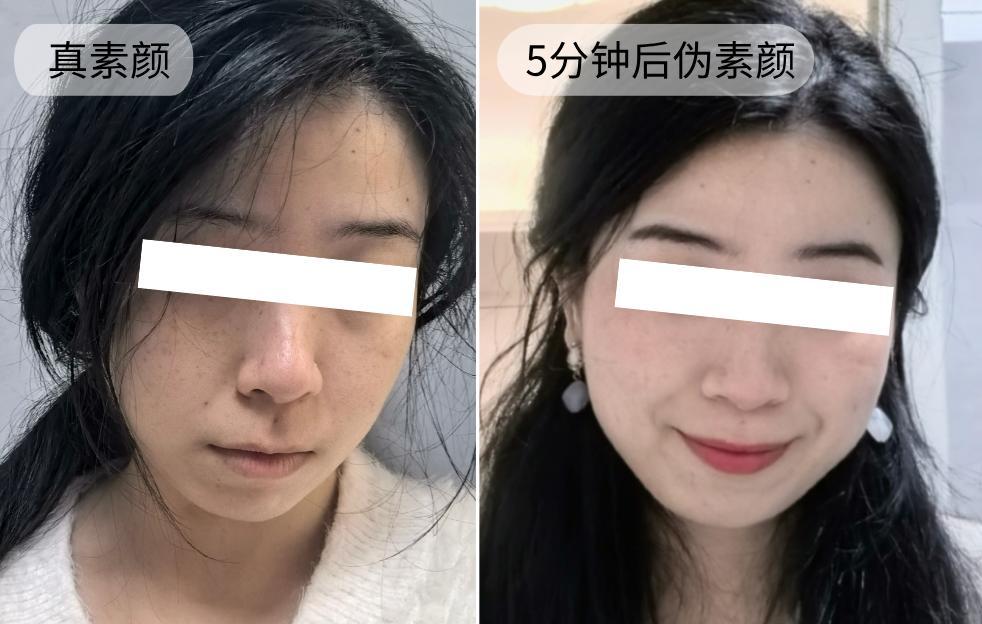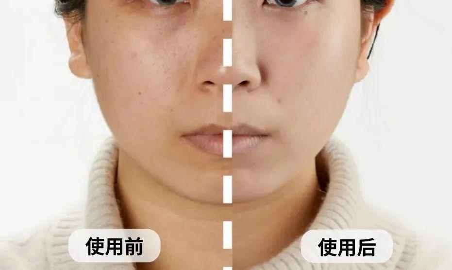 還可以看到,原來有些暗沉粗糙的面部,像是被整體加了一層柔光濾鏡——膚色均勻亮白了很多,不但毛孔沒那麼粗大了,眼下的烏青和法令紋在視覺上也淡了很多。