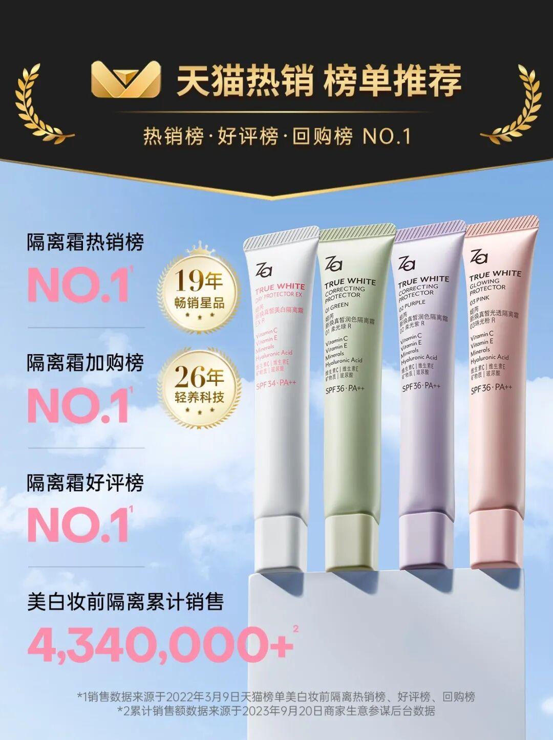 日常咱們自己用 Za 防曬隔離,單獨當防曬 + 素顏霜用也可以,想要更精緻無暇的妝面,做妝前打底、日常修容潤色也可以。
