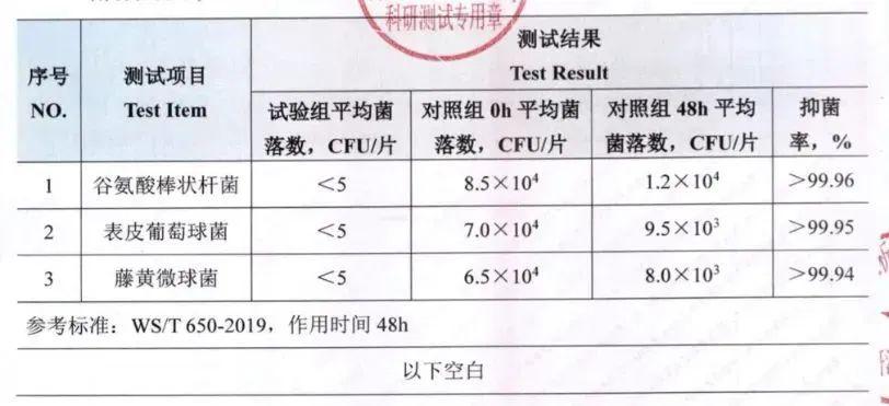 從抑菌試驗的檢測報告,就能很清晰地看到,它對於造成汗臭味的主要菌羣,抑菌率高達 99.94% 以上!