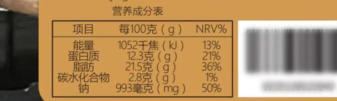 圖注:某款烤腸的脂肪含量爲 21.5%,着實不算低了。