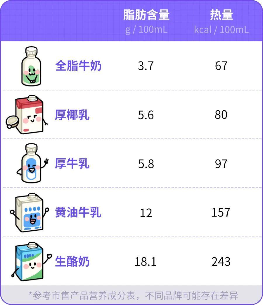 比如我們常喝的生椰、厚乳、黃油、生酪拿鐵,聽起來人畜無害,實則喝下去有多絲滑醇厚,脂肪就有多深不可測。