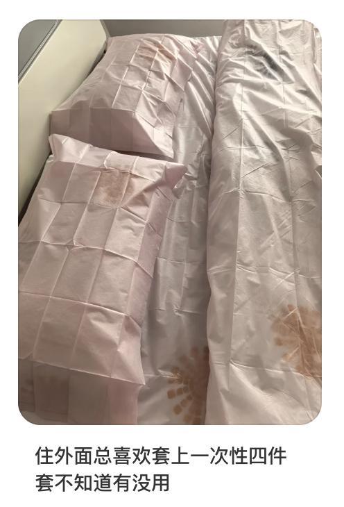 住酒店時,進門先用酒精噴個遍,看到酒店雪白的毛巾也不敢用,想要觸碰又縮回手,自備一次性毛巾、浴巾,甚至一次性牀上四件套……