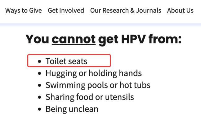 像美國癌症協會就提到,你不會通過馬桶圈感染 HPV[1]: