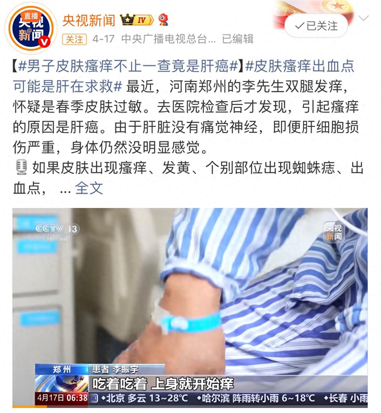近期,微博上的一篇熱搜令網友們十分害怕——身上瘙癢竟是肝癌引起?