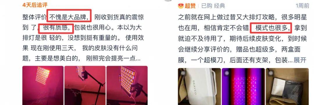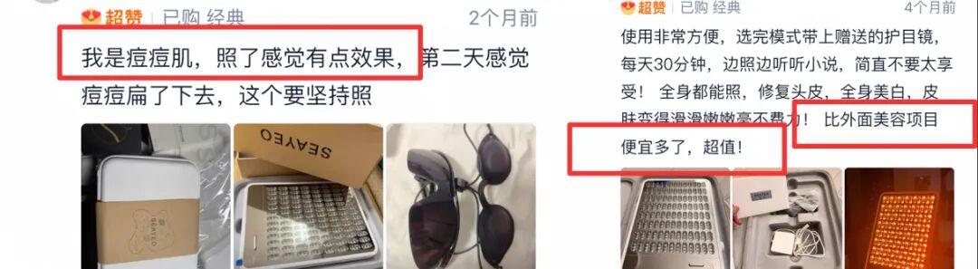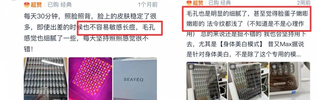 這也是爲啥有的光照了會反黑,甚至出現光老化……這裏涉及的,可不僅是對燈珠的原料製造工藝,還包括對人體皮膚知識的深度研究以及對光程序的精密控制……