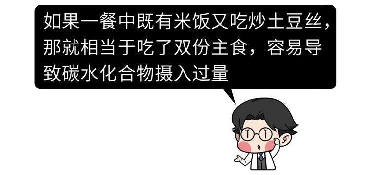 特別提醒,土豆澱粉含量高(約佔20%),如果喫了土豆,記得要相應減少米飯、麪條等主食的份量。