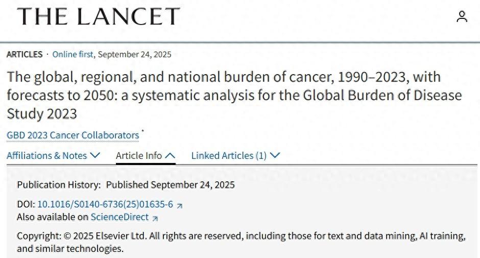 就在最近,柳葉刀上發表了一項由華盛頓大學健康指標與評估研究所數千名研究人員進行的研究,研究顯示全球癌症負擔持續攀升,且該數值還在不斷增加。