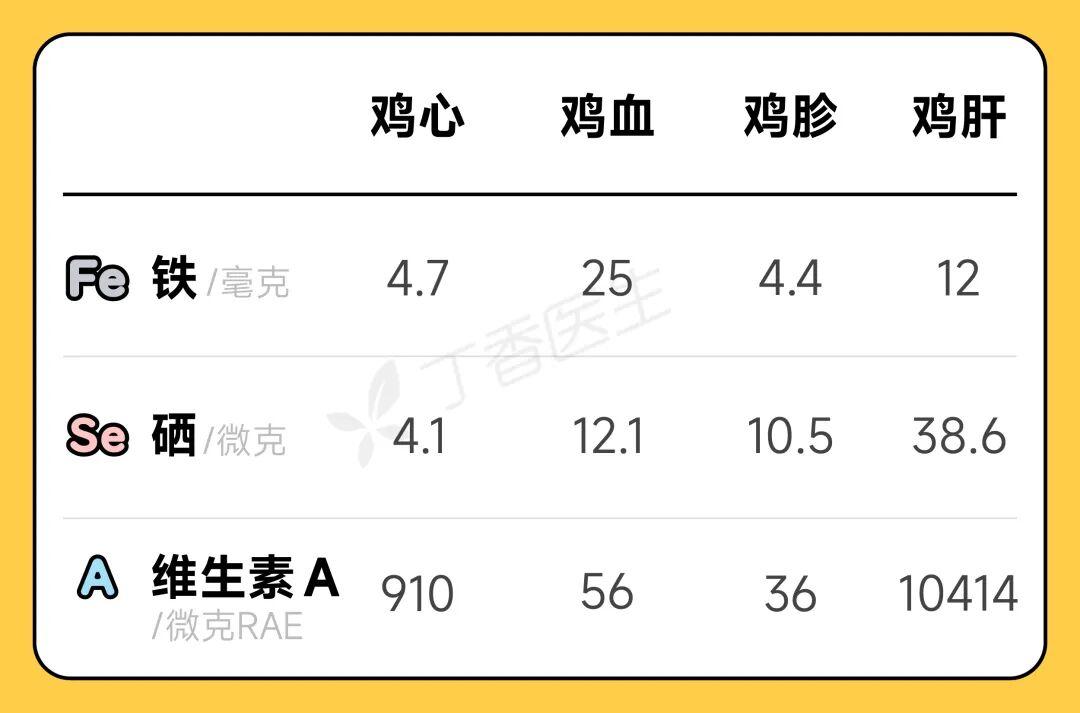 如果要補鐵,雞血第一,雞肝第二,不過市面上雞血賣的少,可以喫雞肝補鐵,雞肝的鐵雖然只有豬肝的一半左右,卻也是羊肝的 1.6 倍。