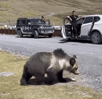 藏馬熊也不例外。這種自駕時偶遇,會在路邊乖巧觀望你的西藏棕熊,多少遊客看到它憨態可掬的樣子後,興奮地搖下車窗、甚至開車門,上去圍觀?