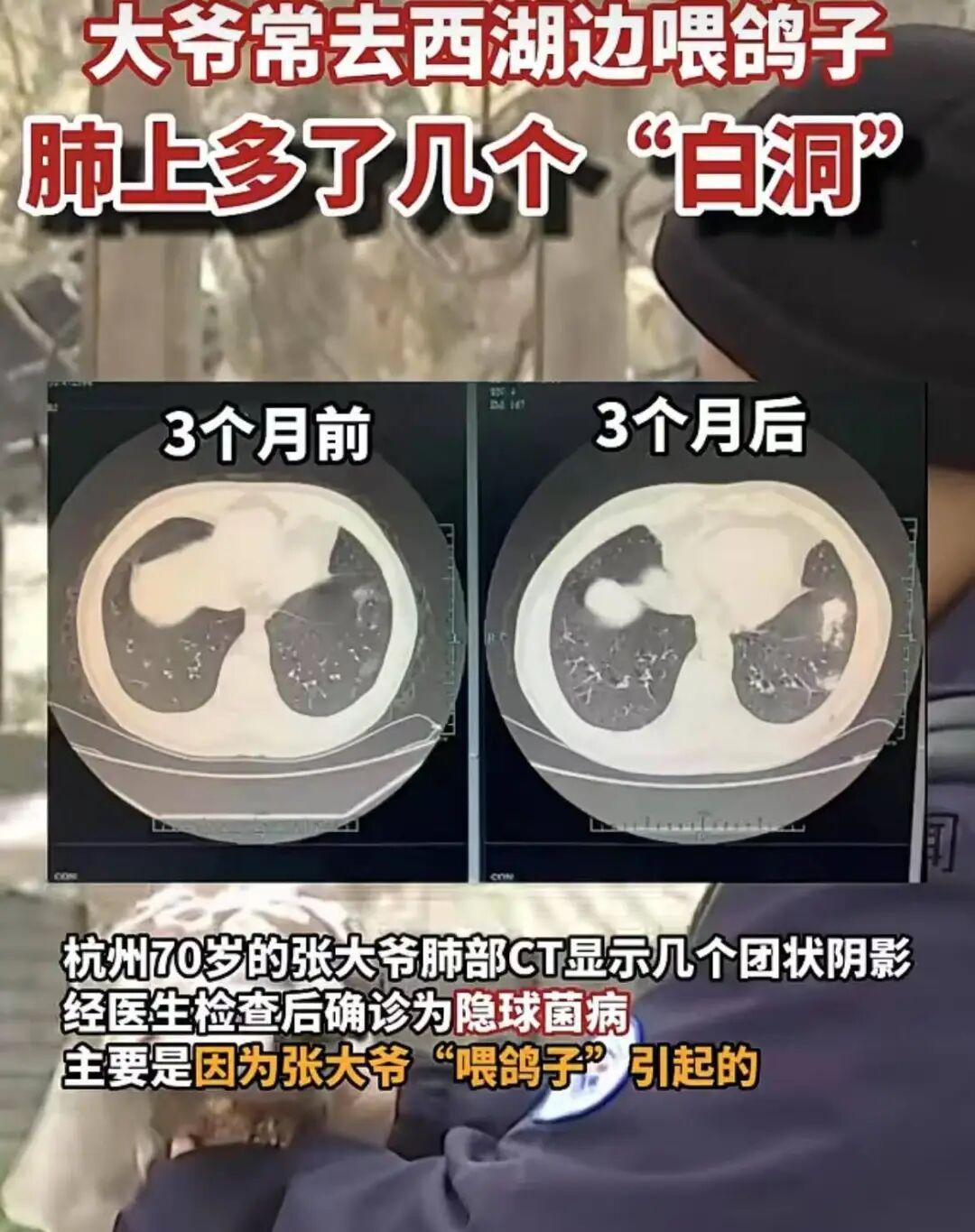 之前新聞就報道過,一個大爺常去杭州西湖邊喂鴿子,肺上竟多了幾個「白洞」,檢查確診正是感染了新型隱球菌病——這哪裏還是可愛的小鴿子?活脫脫一隻飛行的活閻王。