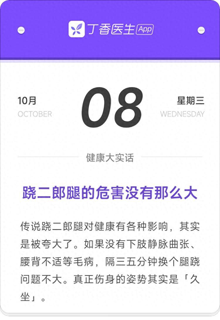 雖說蹺二郎腿的危害沒有那麼大,但坐着的時候,正確的坐姿還是很重要的,那麼好的坐姿應該是怎麼樣的?點擊下方卡片即可查看。