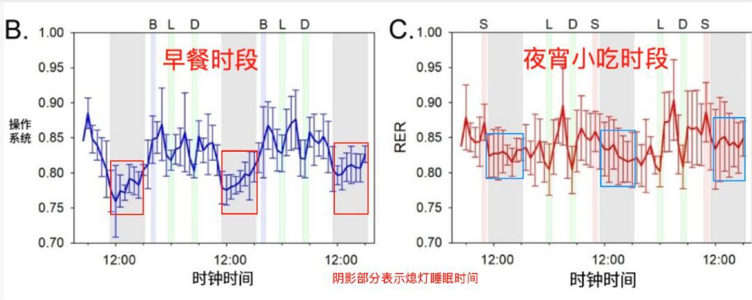 通過對比受試者的呼吸交換率的晝夜變化,發現: