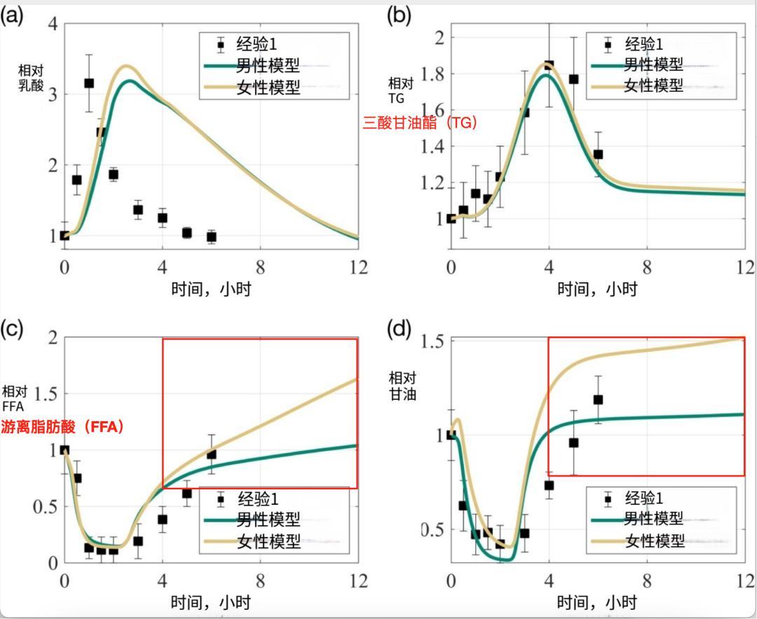 在禁食一整晚後的第一頓餐後約 4 小時,研究人員發現女性受試者血液中脂肪分解產物——「遊離脂肪酸(FFA)」和「甘油」的濃度,大幅度激增,遠遠高於男性。