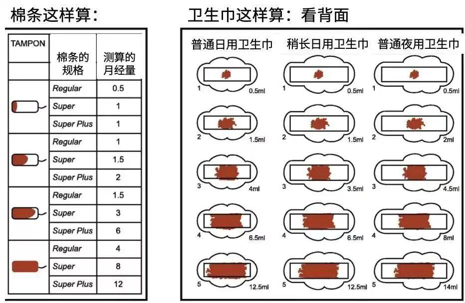 如果想了解自己的經血量有多少,也可以參考下圖的計算方式: