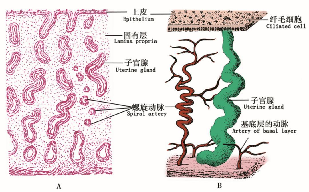 在月經來臨前,子宮內膜在雌孕激素作用下,慢慢變得厚且疏鬆,裏面還有大量的螺旋小動脈也慢慢變長彎曲。