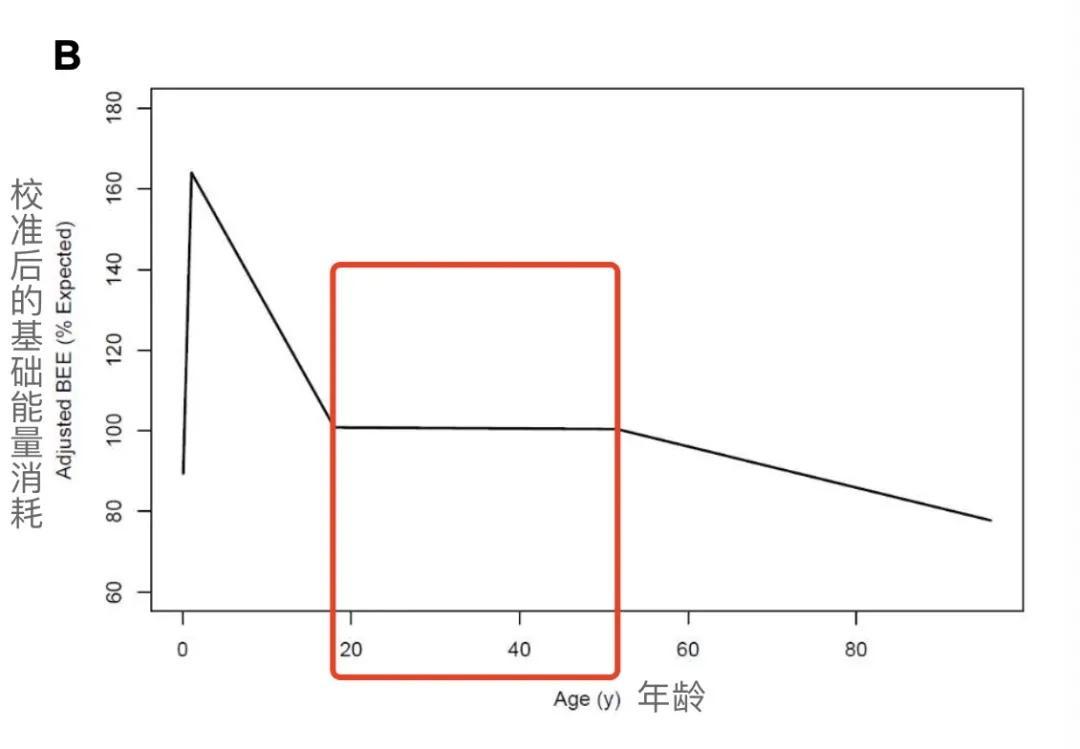 2021 年發表在《Science》上的一項研究發現:在一個人的一生中,代謝規律呈現爲「升高-下降-穩定-緩慢下降」的模式,20~50 歲是穩定的。而新陳代謝真正下降的年紀可能在 50 歲之後。