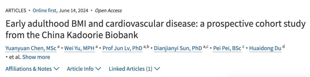 [1] Chen, Yuanyuan, et al. "Early adulthood BMI and cardiovascular disease: a prospective cohort study from the China Kadoorie Biobank." The Lancet Public Health (2024).