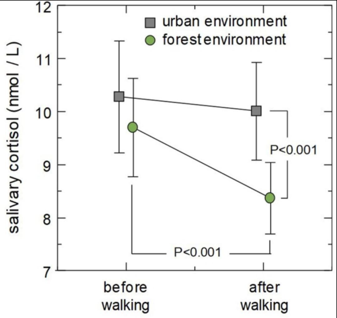 [5] Kobayashi H, Song C, Ikei H, Park BJ, Kagawa T, Miyazaki Y. Combined Effect of Walking and Forest Environment on Salivary Cortisol Concentration. Front Public Health. 2019 Dec 12;7:376.