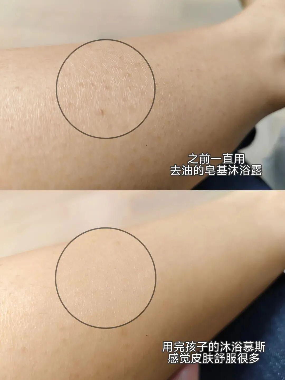 下面是本成年人洗完的對比圖哦,後背這些平時油脂多的地方都清清爽爽,像小腿、手臂這種容易乾澀的地方,皮膚一點都不會覺得緊繃,有一種自然的舒潤感。