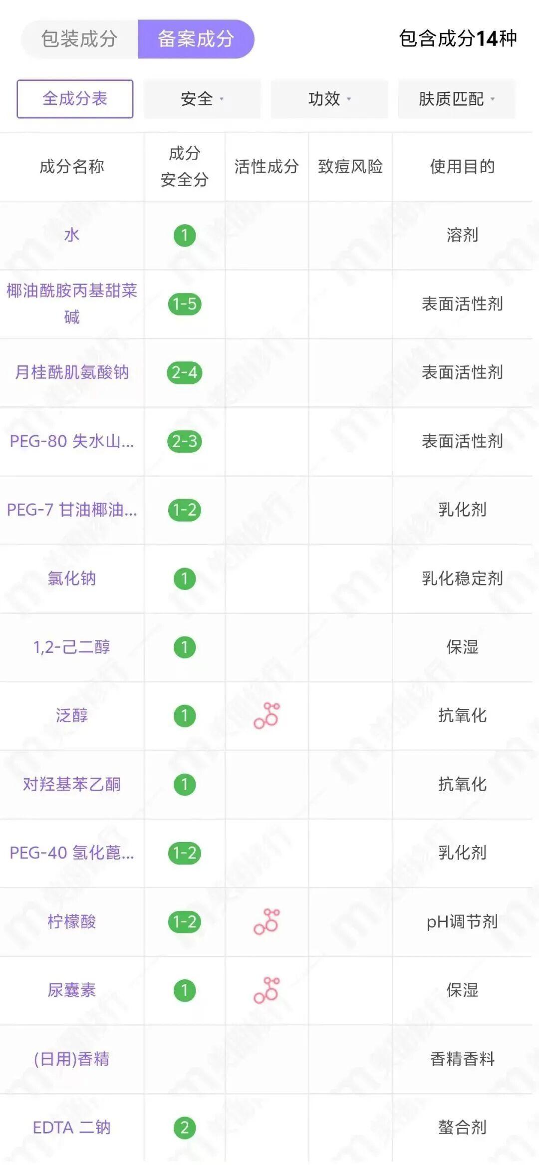 除了選擇溫和的表面活性劑,我們這次的配方里還特別添加了泛醇和尿囊素兩種舒緩保溼成分。