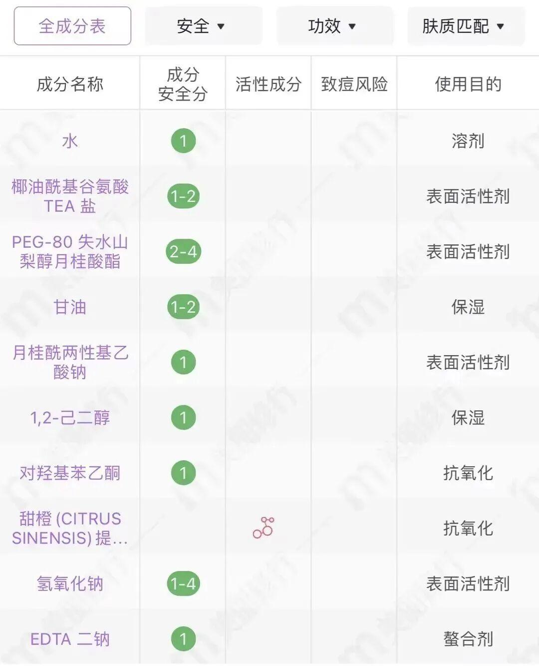 PEG-80 失水山梨醇月桂酸酯:具有溼潤、乳化和穩定泡沫等優良性能,還能降低產品的刺激性,使其更加溫和適合肌膚;