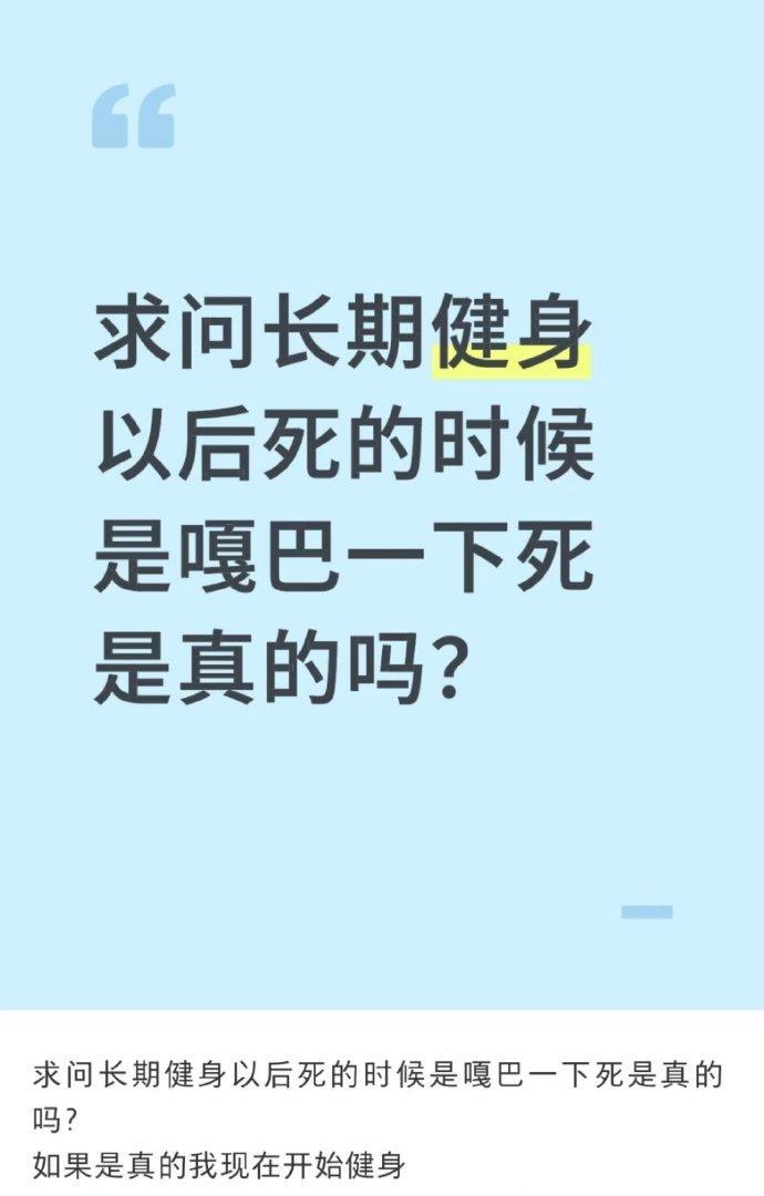 最近也流行起來一個說法:健身的真正好處,不僅是減脂增肌、延年益壽,而是死的時候,可以嘎嘣一下乾脆利落。