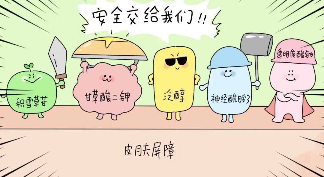 羥基積雪草甙 + 甘草酸二鉀 + 泛醇 + 神經酰胺3 + 透明質酸鈉。