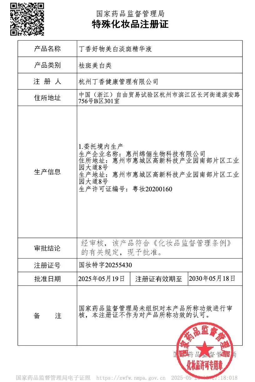 紮紮實實做了數份功效檢測,到最後持國家美白淡斑特證上崗,實力蓋章,咱丁香可以拍着胸脯說一句,它——