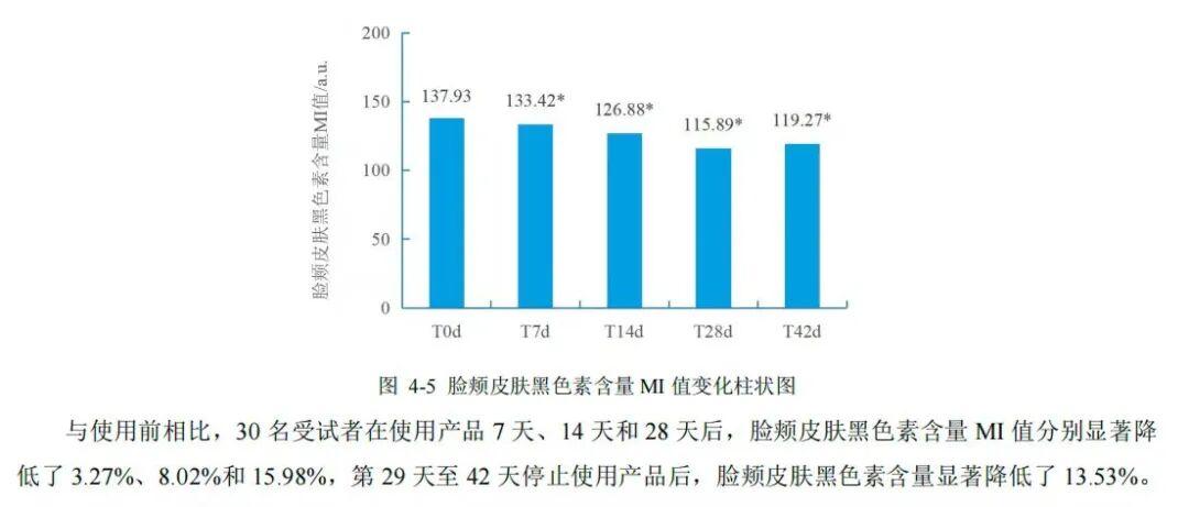 真持久:受試者停用兩週,黑色素依然下降 13.53%;