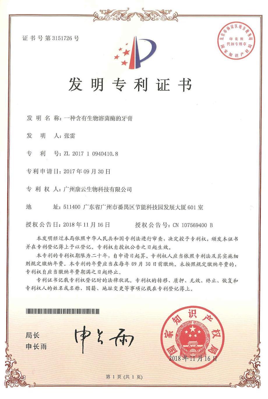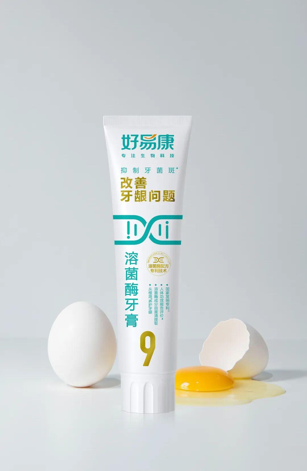 好易康 9 號牙膏,實現技術性突破,其國家專利保活技術不但可以把溶菌酶添加到牙膏裏,並且保持其穩定性。