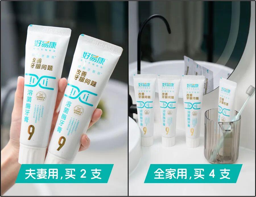 說實話,平時買支能抑制牙菌斑、牙結石的牙膏,隨便就要三四十,好點的五六十一支。好易康 9 號日常單支也要 60 塊左右,要是全家都用,確實有點肉疼。