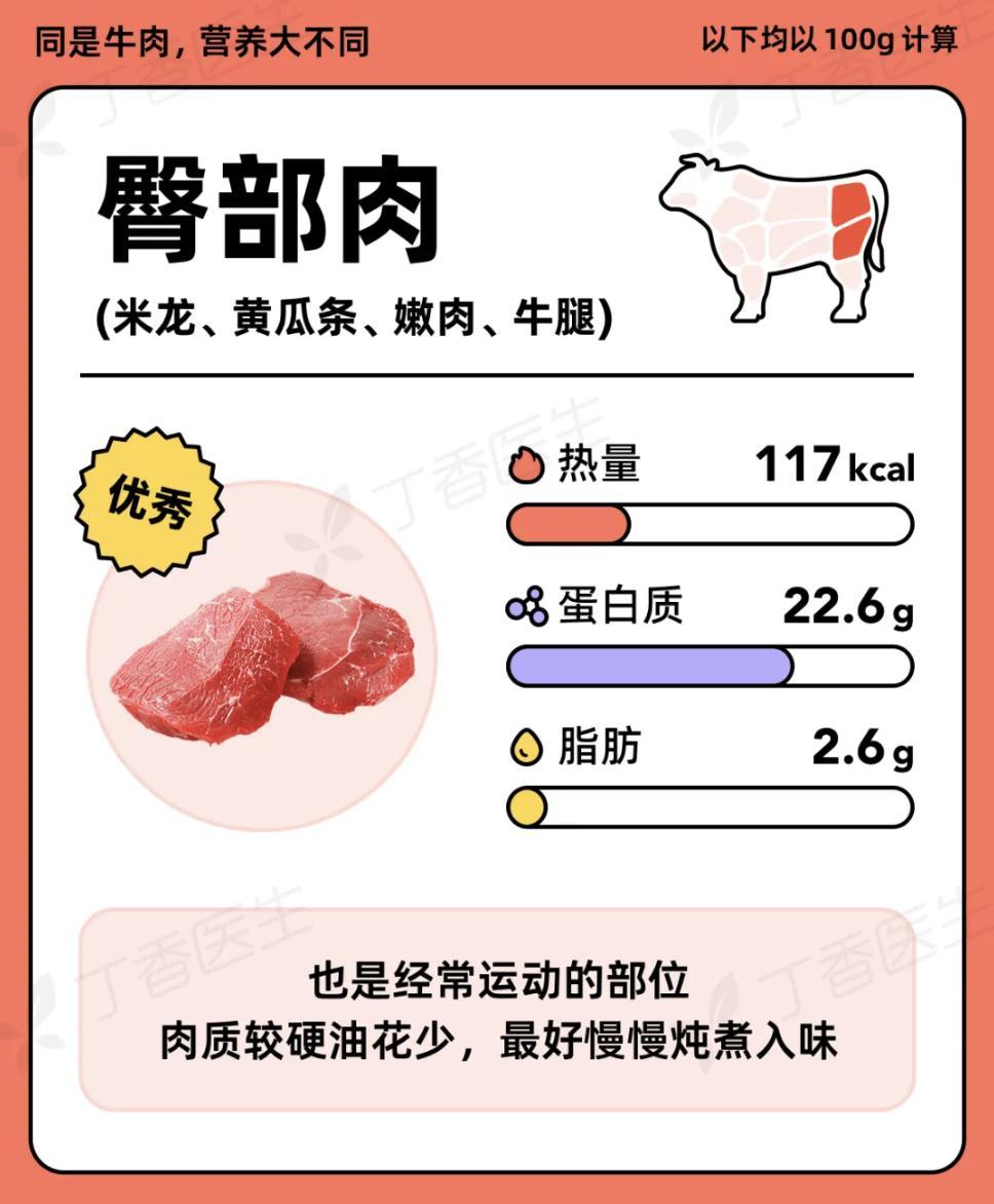 其他優秀部位的話,推薦你試試牛腱子肉和臀部肉,同樣是低脂高蛋白、減脂增肌的好選擇。