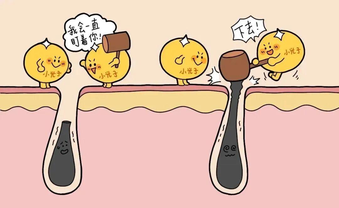 它是直接殺到毛囊的老巢,鎖定毛髮裏的黑色素,哐哐一頓輸出,帶着毛囊同歸於盡,卻又不傷到咱最外層的皮膚。