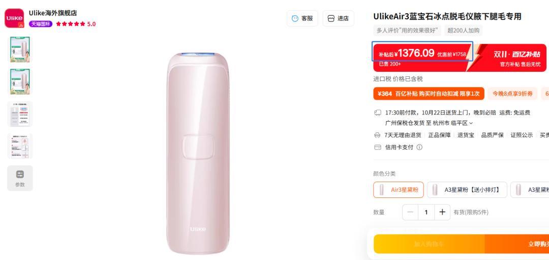 活動名稱:Ulike Air3 藍寶石冰點脫毛儀