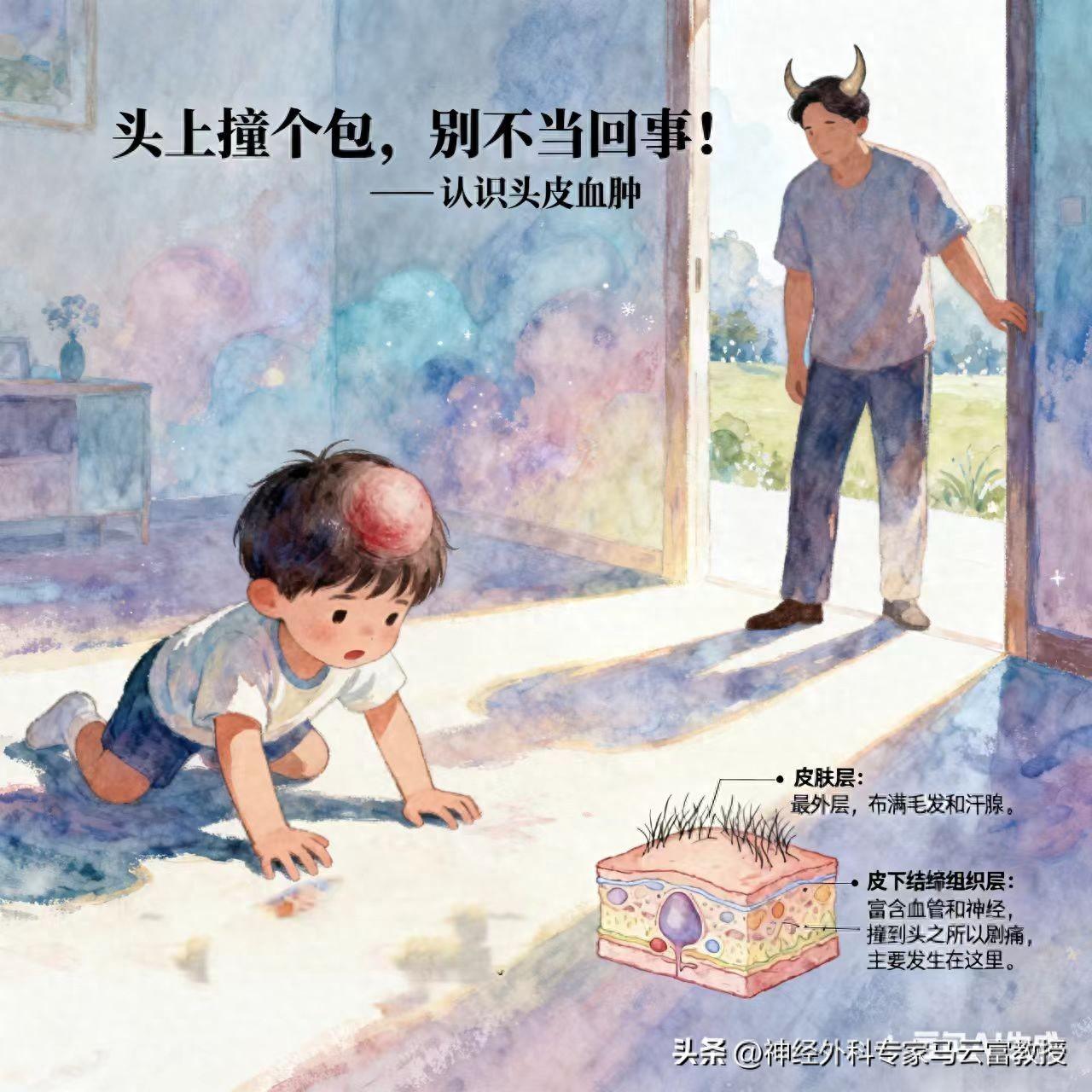 孩子跑太快摔一跤,額頭瞬間鼓起大包;大人一不留神撞上門框,頭上立刻腫起“犄角”。這個惱人的“包”,在醫學上被稱爲頭皮血腫。