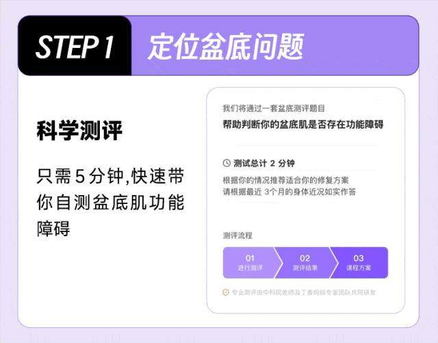 我們在課程中設置了一節「盆底肌功能」測評。通過問題評估,會幫你快速找到自己的盆底肌具體是什麼問題,這樣才能更好地針對性修復。
