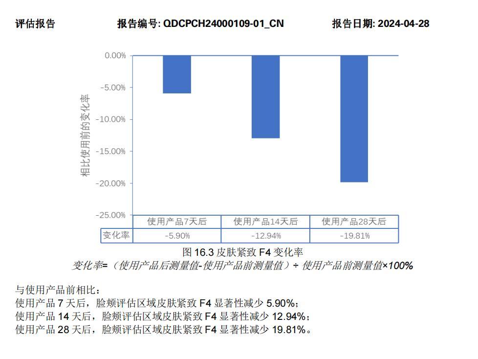 使用產品 28 天后,皮膚緊緻度直接變化了 19.81%!