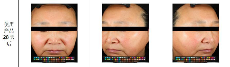 這組實驗,在產品使用 7 天后,皮膚已經隱隱約約泛起了亮光,而使用 28 天之後,皮膚也肉眼可見變得更透亮了。