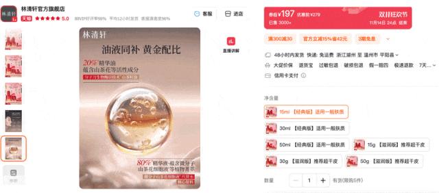 好在這次趕上丁香家雙 11 開團,咱直接把這款林清軒油液精華的價格打下來了——